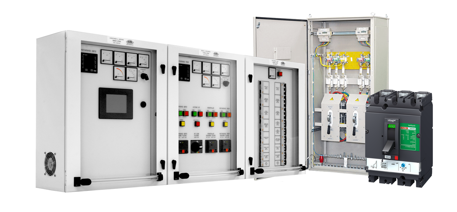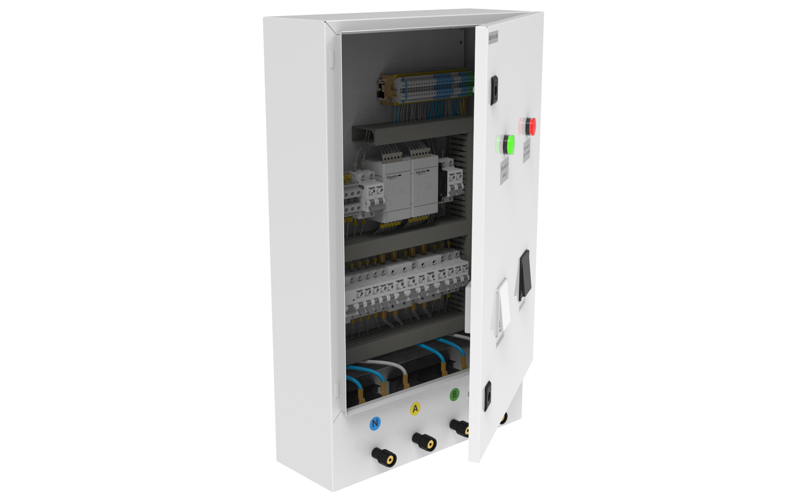 Шкафы управления и электрощиты обеспечивают контроль за распределением и управлением питанием технологического оборудования и работой электродвигателей, насосов, вентиляторов, заслонок и другого электрооборудования.
